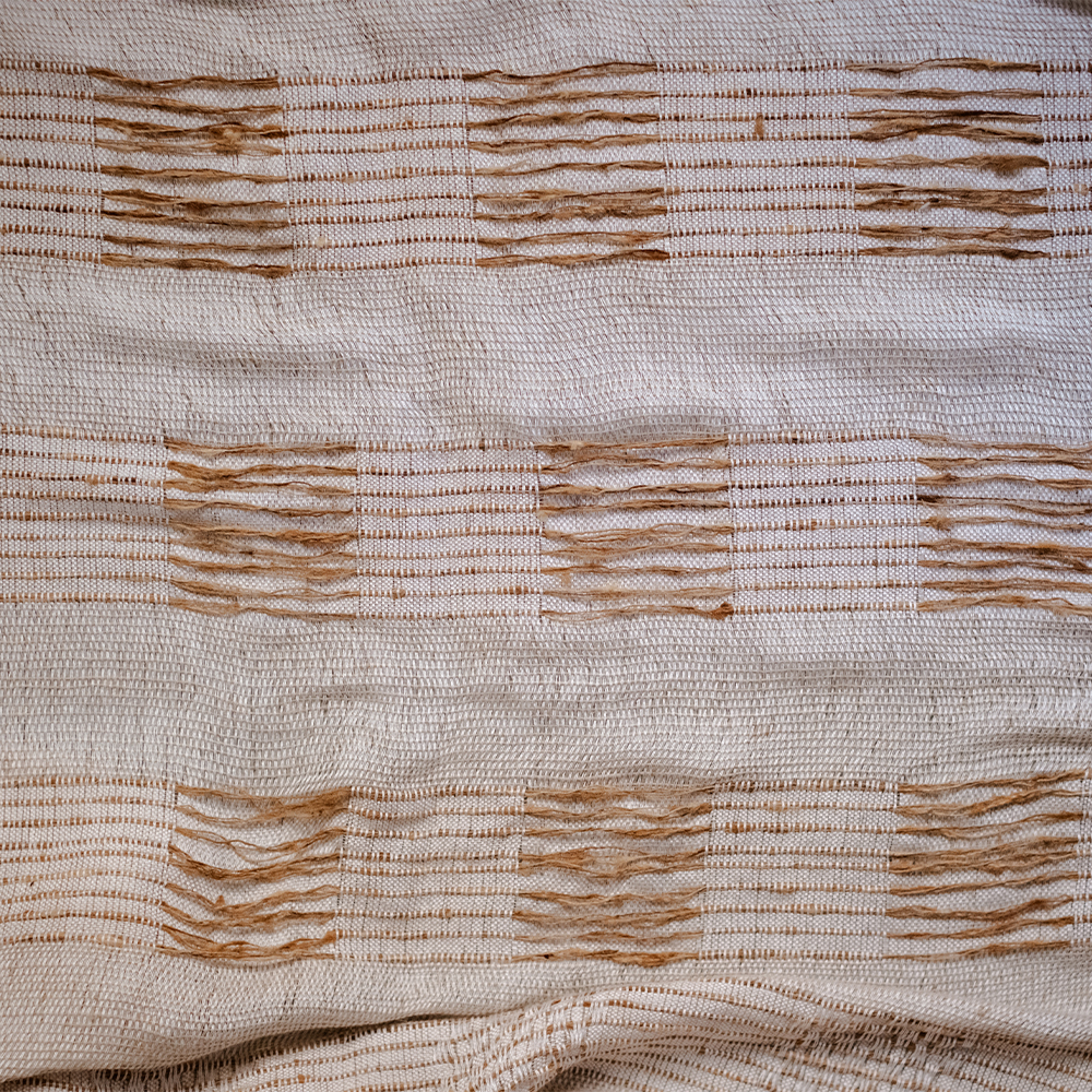 Woven with varying weights of linen yarns, the fabric transitions from intricate honeycomb patterns to flowing golden silk, evoking the warmth and serenity of nature. Vana Silk adds a soft, radiant glow to any space, blending organic richness with luxurious elegance for a sophisticated, timeless presence.